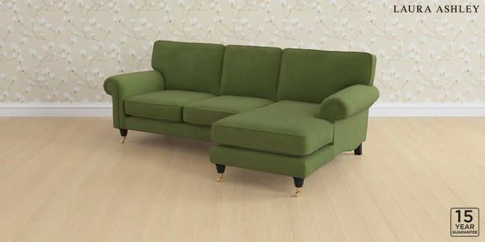6.12.13 Buy Kingston by Laura Ashley Medium Sofa Chaise - Right Hand Tichwell Olive Green Low Brass Castor - Black from the Laura Ashley online shop Click here to use our website with more accessibility support, for example screen readers