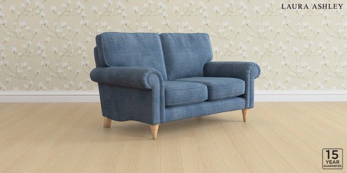 6.12.1 Buy Kingston by Laura Ashley 2 Seater Small Sofa Edwin Chenille Seaspray Blue Low Turned - Light Oak from the Laura Ashley online shop Click here to use our website with more accessibility support, for example screen readers