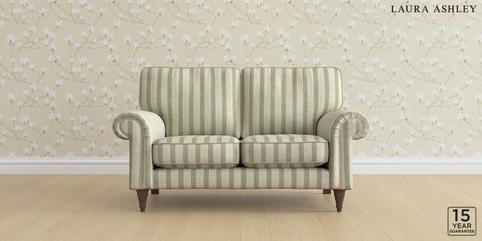 6.12.1 Buy Kingston by Laura Ashley 2 Seater Small Sofa Kinsham Stripe Hedgerow Green Low Turned - Chestnut from the Laura Ashley online shop Click here to use our website with more accessibility support, for example screen readers