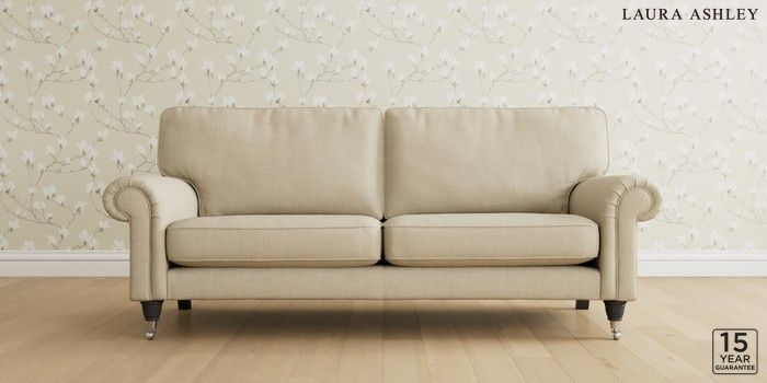 6.12.1 Buy Kingston by Laura Ashley 3 Seater Sofa Wooton Natural Low Chrome Castor - Black from the Laura Ashley online shop Click here to use our website with more accessibility support, for example screen readers