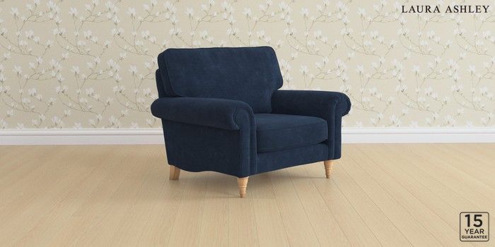 6.12.13 Buy Kingston by Laura Ashley Snuggle Alwyn Velvet Midnight Navy Low Turned - Light Oak from the Laura Ashley online shop Click here to use our website with more accessibility support, for example screen readers