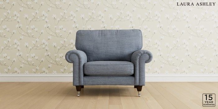 6.12.1 Buy Kingston by Laura Ashley Snuggle Harley Seaspray Blue Low Chrome Castor - Chestnut from the Laura Ashley online shop Click here to use our website with more accessibility support, for example screen readers