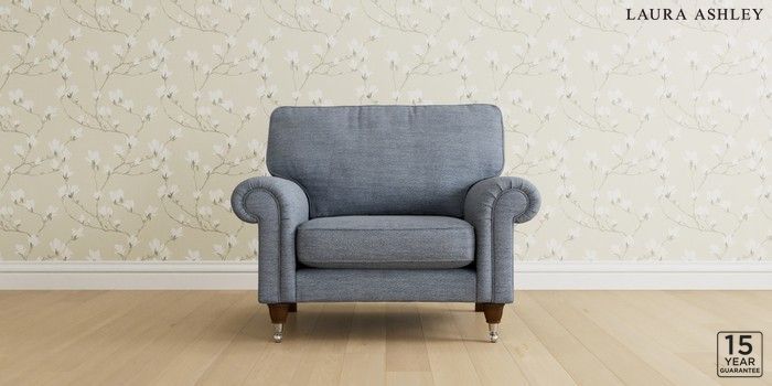 6.12.13 Buy Kingston by Laura Ashley Snuggle Harley Seaspray Blue Low Chrome Castor - Teak from the Laura Ashley online shop Click here to use our website with more accessibility support, for example screen readers
