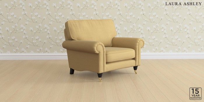 6.12.1 Buy Kingston by Laura Ashley Snuggle Kinsham Ochre Yellow Low Brass Castor - Black from the Laura Ashley online shop Click here to use our website with more accessibility support, for example screen readers