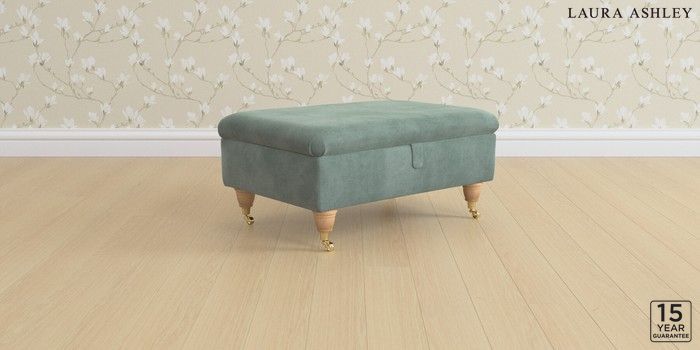 6.12.1 Buy Kingston by Laura Ashley Storage Footstool Ailsworth Fern Green Low Brass Castor - Light Oak from the Laura Ashley online shop Click here to use our website with more accessibility support, for example screen readers