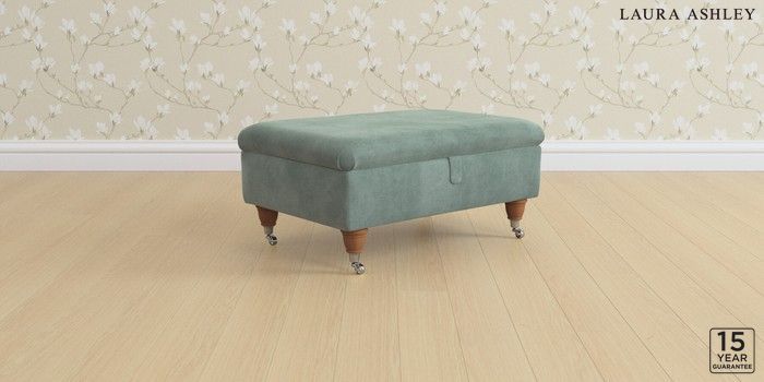 6.12.1 Buy Kingston by Laura Ashley Storage Footstool Ailsworth Fern Green Low Chrome Castor - Teak from the Laura Ashley online shop Click here to use our website with more accessibility support, for example screen readers