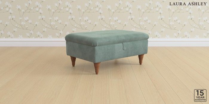 6.12.13 Buy Kingston by Laura Ashley Storage Footstool Ailsworth Fern Green Low Turned - Teak from the Laura Ashley online shop Click here to use our website with more accessibility support, for example screen readers