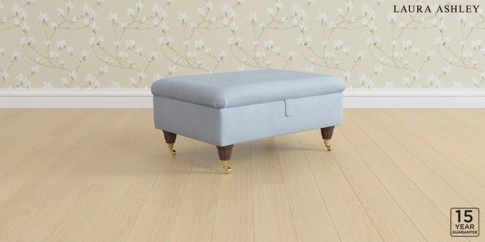 6.12.13 Buy Kingston by Laura Ashley Storage Footstool Ailsworth Newport Blue Low Brass Castor - Chestnut from the Laura Ashley online shop Click here to use our website with more accessibility support, for example screen readers