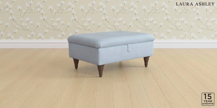 6.12.1 Buy Kingston by Laura Ashley Storage Footstool Ailsworth Newport Blue Low Turned - Chestnut from the Laura Ashley online shop Click here to use our website with more accessibility support, for example screen readers