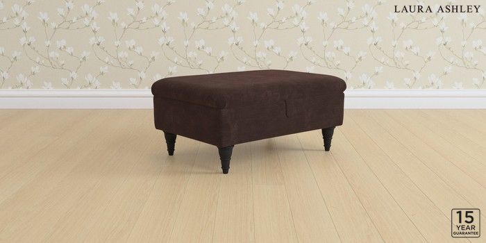 6.12.13 Buy Kingston by Laura Ashley Storage Footstool Alwyn Velvet Chocolate Brown Low Turned - Black from the Laura Ashley online shop Click here to use our website with more accessibility support, for example screen readers