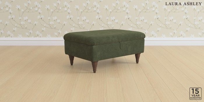 6.12.13 Buy Kingston by Laura Ashley Storage Footstool Alwyn Velvet Ivy Green Low Turned - Chestnut from the Laura Ashley online shop Click here to use our website with more accessibility support, for example screen readers