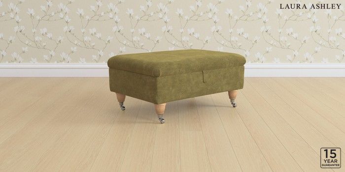 6.12.1 Buy Kingston by Laura Ashley Storage Footstool Alwyn Velvet Olive Green Low Chrome Castor - Light Oak from the Laura Ashley online shop Click here to use our website with more accessibility support, for example screen readers