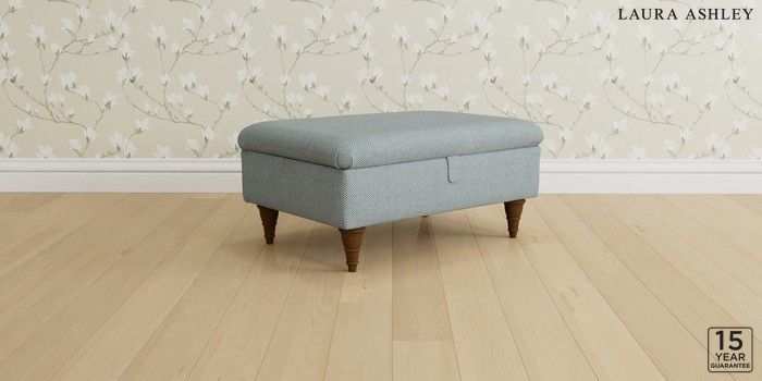 6.12.1 Buy Kingston by Laura Ashley Storage Footstool Anneliese Seaspray Blue Low Turned - Teak from the Laura Ashley online shop Click here to use our website with more accessibility support, for example screen readers