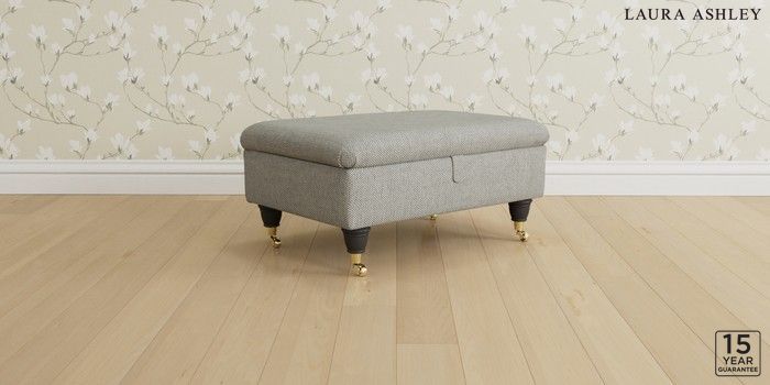 6.12.13 Buy Kingston by Laura Ashley Storage Footstool Anneliese Steel Grey Low Brass Castor - Black from the Laura Ashley online shop Click here to use our website with more accessibility support, for example screen readers
