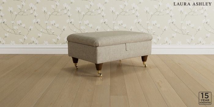 6.12.1 Buy Kingston by Laura Ashley Storage Footstool Bainton Natural Low Brass Castor - Teak from the Laura Ashley online shop Click here to use our website with more accessibility support, for example screen readers
