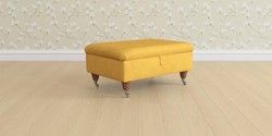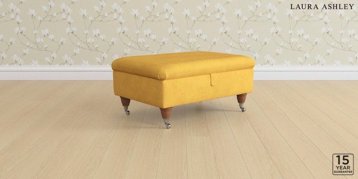 6.12.13 Buy Kingston by Laura Ashley Storage Footstool Bainton Ochre Yellow Low Chrome Castor - Teak from the Laura Ashley online shop Click here to use our website with more accessibility support, for example screen readers