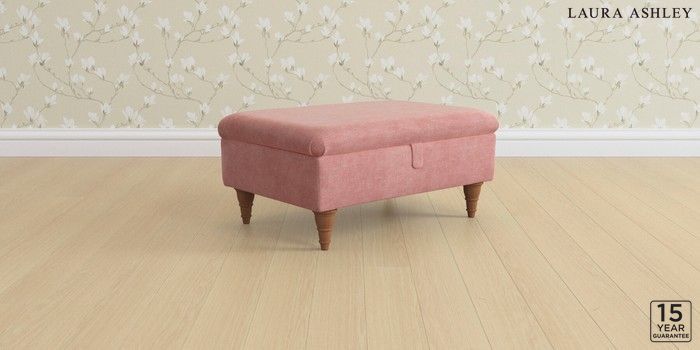 6.12.1 Buy Kingston by Laura Ashley Storage Footstool Bainton Old Rose Pink Low Turned - Teak from the Laura Ashley online shop Click here to use our website with more accessibility support, for example screen readers