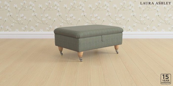 6.12.1 Buy Kingston by Laura Ashley Storage Footstool Birchgrove Check Olive Green Low Chrome Castor - Light Oak from the Laura Ashley online shop Click here to use our website with more accessibility support, for example screen readers