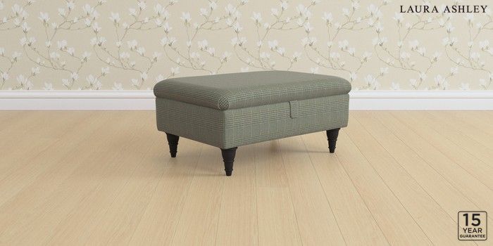 6.12.1 Buy Kingston by Laura Ashley Storage Footstool Birchgrove Check Olive Green Low Turned - Black from the Laura Ashley online shop Click here to use our website with more accessibility support, for example screen readers