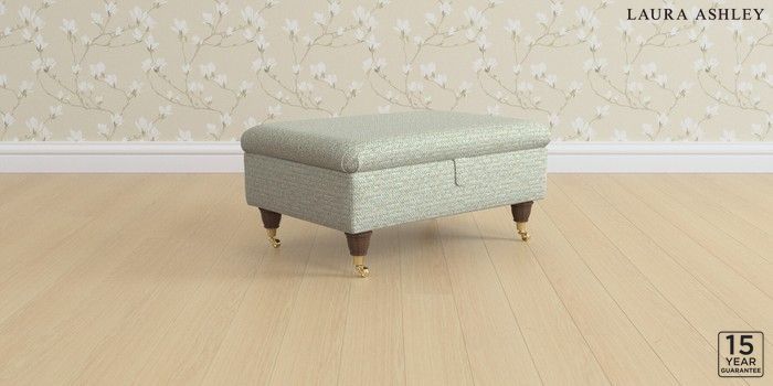 6.12.1 Buy Kingston by Laura Ashley Storage Footstool Borwick Newport Blue Low Brass Castor - Chestnut from the Laura Ashley online shop Click here to use our website with more accessibility support, for example screen readers