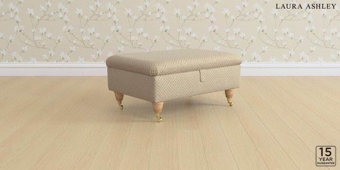 6.12.1 Buy Kingston by Laura Ashley Storage Footstool Chequers Hazelnut Natural Low Brass Castor - Light Oak from the Laura Ashley online shop Click here to use our website with more accessibility support, for example screen readers