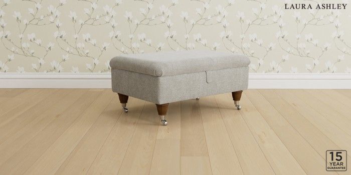 6.12.1 Buy Kingston by Laura Ashley Storage Footstool Edwin Chenille Silver Grey Low Chrome Castor - Teak from the Laura Ashley online shop Click here to use our website with more accessibility support, for example screen readers