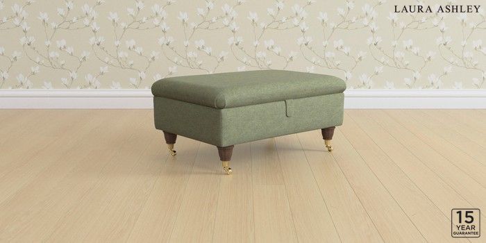 6.12.13 Buy Kingston by Laura Ashley Storage Footstool Harley Moss Green Low Brass Castor - Chestnut from the Laura Ashley online shop Click here to use our website with more accessibility support, for example screen readers