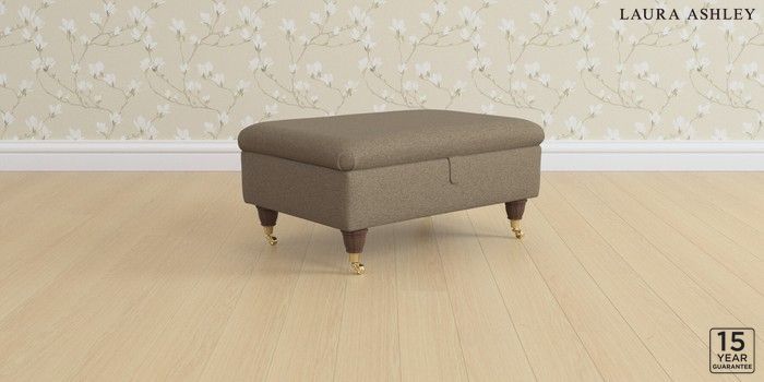 6.12.1 Buy Kingston by Laura Ashley Storage Footstool Harley Truffle Natural Low Brass Castor - Chestnut from the Laura Ashley online shop Click here to use our website with more accessibility support, for example screen readers