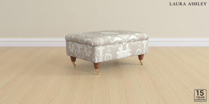 6.12.1 Buy Kingston by Laura Ashley Storage Footstool Josette Champagne Natural Low Brass Castor - Teak from the Laura Ashley online shop Click here to use our website with more accessibility support, for example screen readers