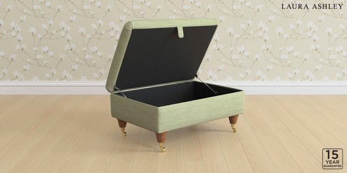 7.2.10 Buy Kingston by Laura Ashley Storage Footstool Kinsham Hedgerow Green Low Brass Castor - Teak from the Laura Ashley online shop Click here to use our website with more accessibility support, for example screen readers