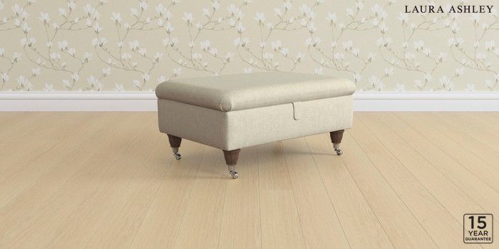 6.12.1 Buy Kingston by Laura Ashley Storage Footstool Kinsham Natural Low Chrome Castor - Chestnut from the Laura Ashley online shop Click here to use our website with more accessibility support, for example screen readers