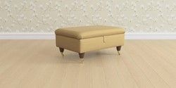6.12.1 Buy Kingston by Laura Ashley Storage Footstool Kinsham Ochre Yellow Low Brass Castor - Chestnut from the Laura Ashley online shop Click here to use our website with more accessibility support, for example screen readers