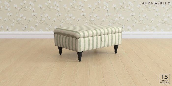 6.12.1 Buy Kingston by Laura Ashley Storage Footstool Kinsham Stripe Hedgerow Green Low Turned - Black from the Laura Ashley online shop Click here to use our website with more accessibility support, for example screen readers
