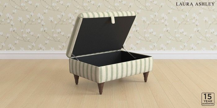 7.2.10 Buy Kingston by Laura Ashley Storage Footstool Kinsham Stripe Hedgerow Green Low Turned - Chestnut from the Laura Ashley online shop Click here to use our website with more accessibility support, for example screen readers