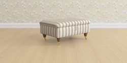 6.12.1 Buy Kingston by Laura Ashley Storage Footstool Kinsham Stripe Seaspray Blue Low Brass Castor - Teak from the Laura Ashley online shop Click here to use our website with more accessibility support, for example screen readers