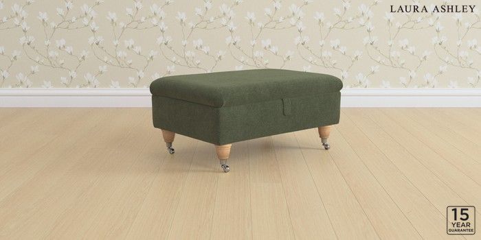 6.12.1 Buy Kingston by Laura Ashley Storage Footstool Lundar Chenille Ivy Green Low Chrome Castor - Light Oak from the Laura Ashley online shop Click here to use our website with more accessibility support, for example screen readers