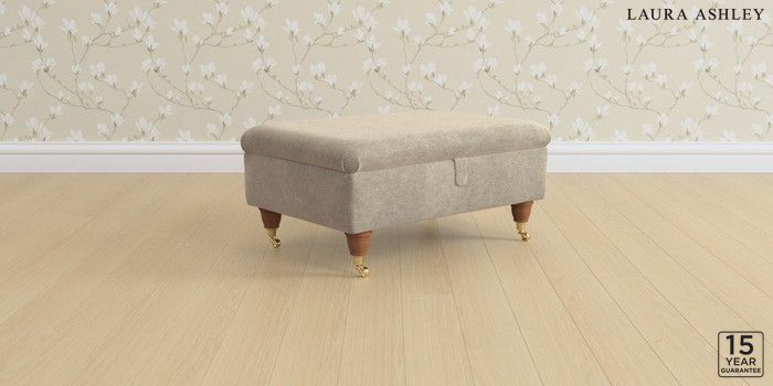 6.12.1 Buy Kingston by Laura Ashley Storage Footstool Lundar Chenille Truffle Natural Low Brass Castor - Teak from the Laura Ashley online shop Click here to use our website with more accessibility support, for example screen readers