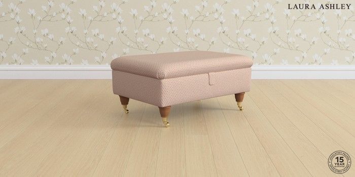 6.12.1 Buy Kingston by Laura Ashley Storage Footstool Melbreak Geo Chalk Pink Low Brass Castor - Teak from the Laura Ashley online shop Click here to use our website with more accessibility support, for example screen readers