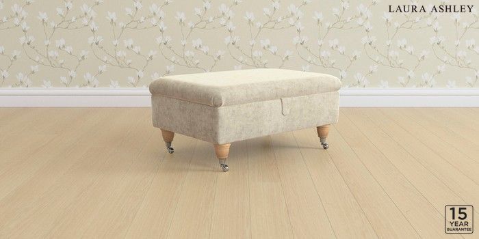 6.12.1 Buy Kingston by Laura Ashley Storage Footstool Nantmor Truffle Natural Low Chrome Castor - Light Oak from the Laura Ashley online shop Click here to use our website with more accessibility support, for example screen readers