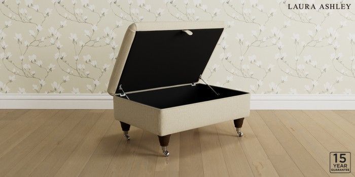 7.2.6 Buy Kingston by Laura Ashley Storage Footstool Orla Oyster Natural Low Chrome Castor - Chestnut from the Laura Ashley online shop Click here to use our website with more accessibility support, for example screen readers