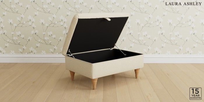 7.2.6 Buy Kingston by Laura Ashley Storage Footstool Orla Oyster Natural Low Turned - Light Oak from the Laura Ashley online shop Click here to use our website with more accessibility support, for example screen readers
