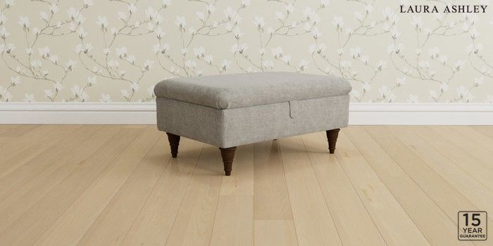 6.12.1 Buy Kingston by Laura Ashley Storage Footstool Orla Pale Steel Grey Low Turned - Chestnut from the Laura Ashley online shop Click here to use our website with more accessibility support, for example screen readers