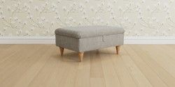 6.12.13 Buy Kingston by Laura Ashley Storage Footstool Orla Pale Steel Grey Low Turned - Light Oak from the Laura Ashley online shop Click here to use our website with more accessibility support, for example screen readers