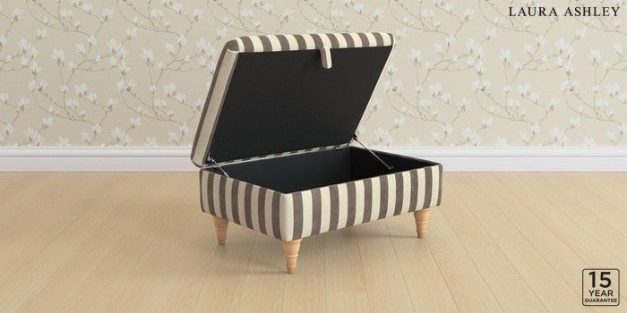 7.2.6 Buy Kingston by Laura Ashley Storage Footstool Orla Stripe Dark Truffle Natural Low Turned - Light Oak from the Laura Ashley online shop Click here to use our website with more accessibility support, for example screen readers
