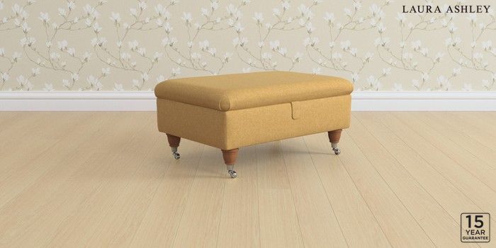 6.12.1 Buy Kingston by Laura Ashley Storage Footstool Peyton Ochre Yellow Low Chrome Castor - Teak from the Laura Ashley online shop Click here to use our website with more accessibility support, for example screen readers