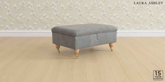 6.12.1 Buy Kingston by Laura Ashley Storage Footstool Wooton Dark Steel Grey Low Brass Castor - Light Oak from the Laura Ashley online shop Click here to use our website with more accessibility support, for example screen readers