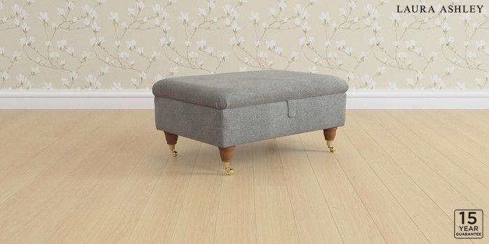 6.12.1 Buy Kingston by Laura Ashley Storage Footstool Wooton Dark Steel Grey Low Brass Castor - Teak from the Laura Ashley online shop Click here to use our website with more accessibility support, for example screen readers