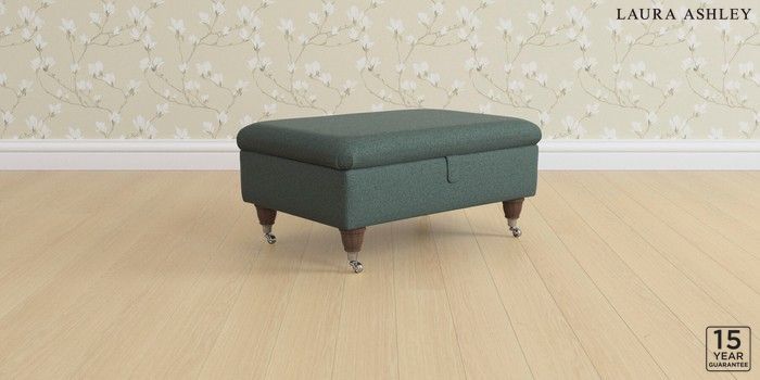 6.12.1 Buy Kingston by Laura Ashley Storage Footstool Wooton Forest Green Low Chrome Castor - Chestnut from the Laura Ashley online shop Click here to use our website with more accessibility support, for example screen readers