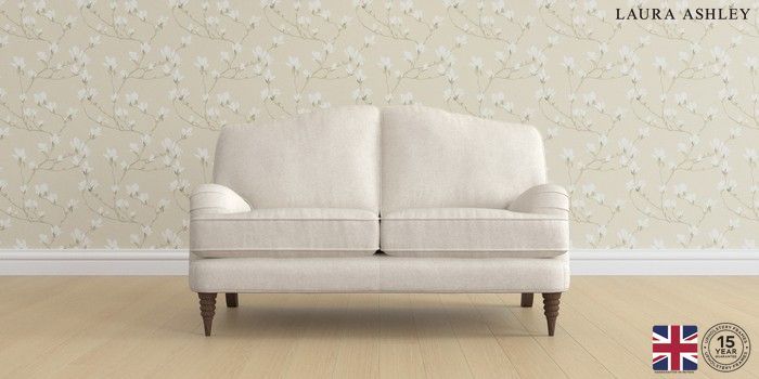 7.2.6 Buy Lynden by Laura Ashley 2 Seater Small Sofa Anneliese Oyster Natural Ornate Turned - Chestnut from the Laura Ashley online shop Click here to use our website with more accessibility support, for example screen readers