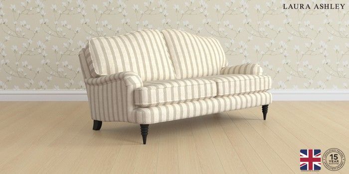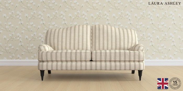 6.12.1 Buy Lynden by Laura Ashley 3 Seater Small Sofa Kinsham Stripe Natural Ornate Turned - Black from the Laura Ashley online shop Click here to use our website with more accessibility support, for example screen readers